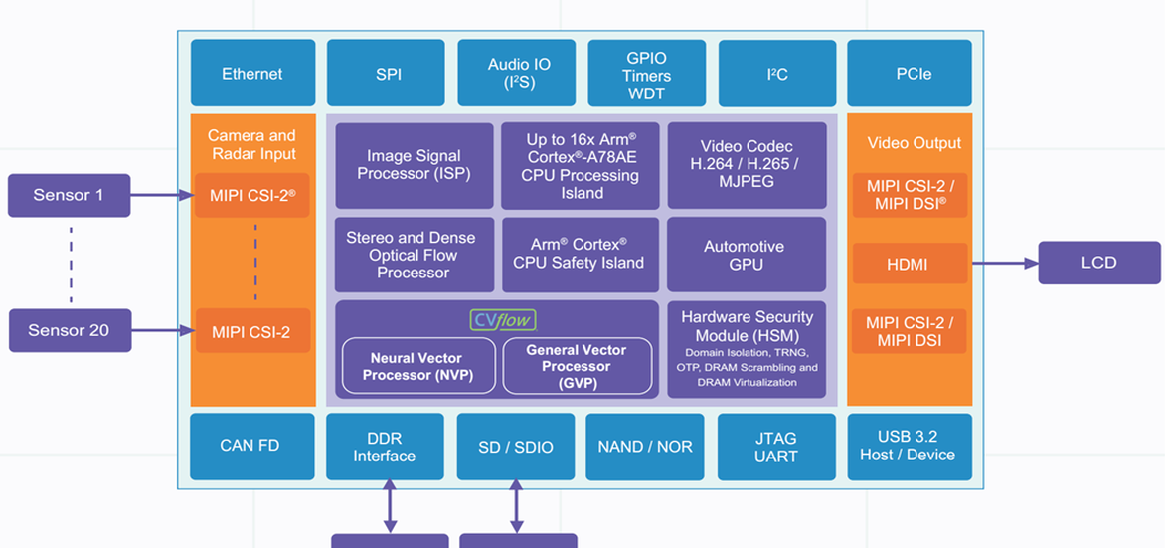 安霸的CV3可能不為大多數(shù)人所熟知,但它在存儲帶寬方面表現(xiàn)出色,支持最高的LPDDR5X規(guī)格,并且具有最高的256比特位寬。這款芯片采用三星的5納米工藝制造,目前已經(jīng)得到了德國大陸汽車公司的支持。