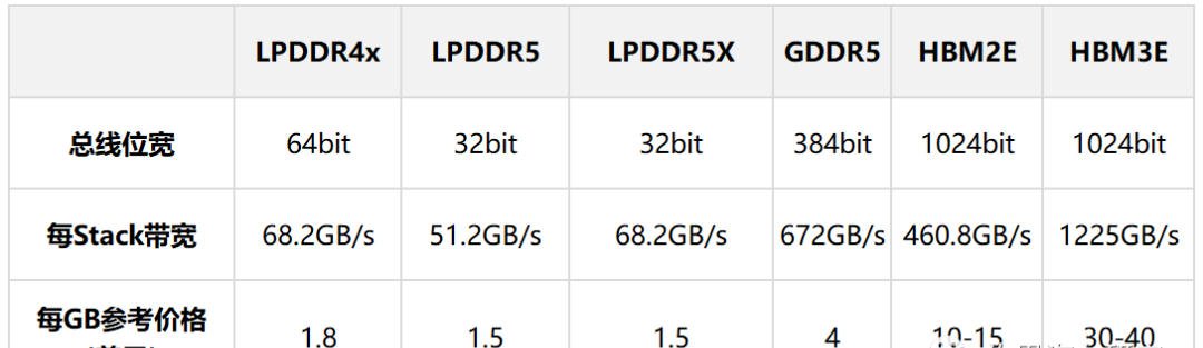 如何計算存儲帶寬,芯片本身都有存儲管理器,這通常是CPU的一部分,決定存儲帶寬的有兩點,首先是CPU支持的存儲類型,即存儲的物理層和控制器,其次是CPU的存儲帶寬,LPDDR的存儲帶寬最高一般是256比特,GDDR可以到384比特,HBM可以到4096甚至8192比特,這些都關聯(lián)成本,廠家在設計芯片時,會在成本和性能之間找一個平衡點,有些廠家偏重成本,那就64比特甚至32比特,有些偏重性能,如真正的AI芯片,無一例外都是HBM的,成本都在1500美元以上。