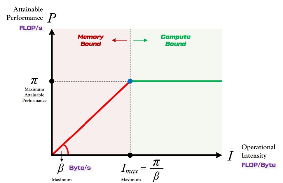 算力決定“屋頂”的高度(綠色線段),帶寬決定“房檐”的斜率(紅色線段)